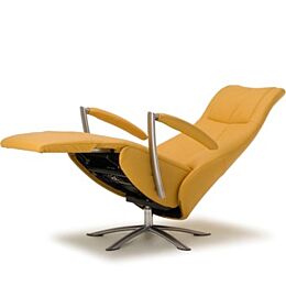 Deze relaxfauteuil is samen te stellen naar eigen smaak en voorkeur. Je kunt namelijk kiezen uit 5 ruggen, 5 draaiarmen en 3 armen met doorlopende zijden. Daarnaast is de metalen arm leverbaar in RVS en zwart metaal. Verder is er ook nog keuze uit 15 voeten voor de draaifauteuils.