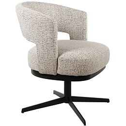 De eetkamerstoel Blues combineert comfort met een elegante uitstraling. Deze uitvoering is bekleed met de zachte Stof Cremona - Natural 02, een lichte tint die warmte en rust toevoegt aan je interieur. Het zwarte metalen frame geeft de stoel een moderne basis, terwijl de 360° draaifunctie zorgt voor extra gebruiksgemak en flexibiliteit aan tafel.