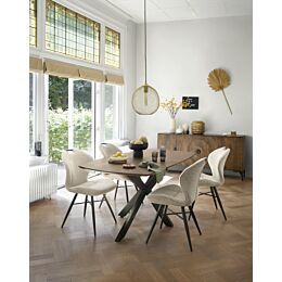 Eettafel Kopenhagen van Feelings is een strakke tafel met zwart metalen poten. Door zijn stoere blad past deze perfect in een industrieel interieur.
